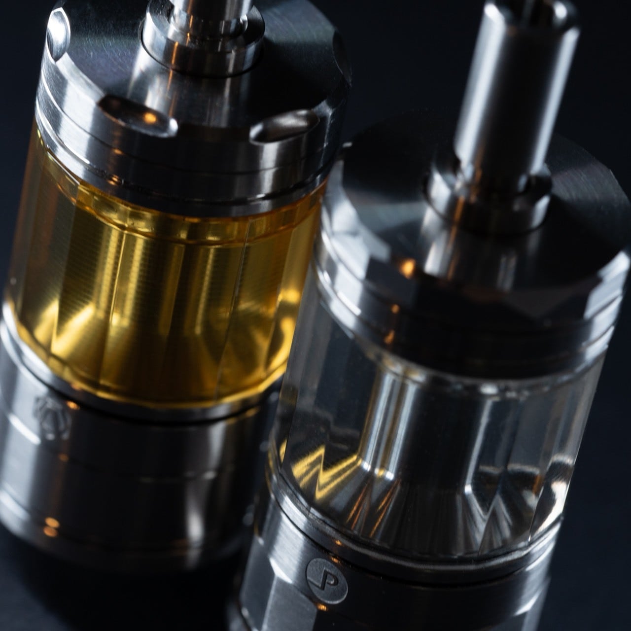 特にARCANA MODS純正オプションのダイモンドカットキットを使用するとアトマイザーの大部分が多角形のデザインで統一されてより一体感が生まれます。