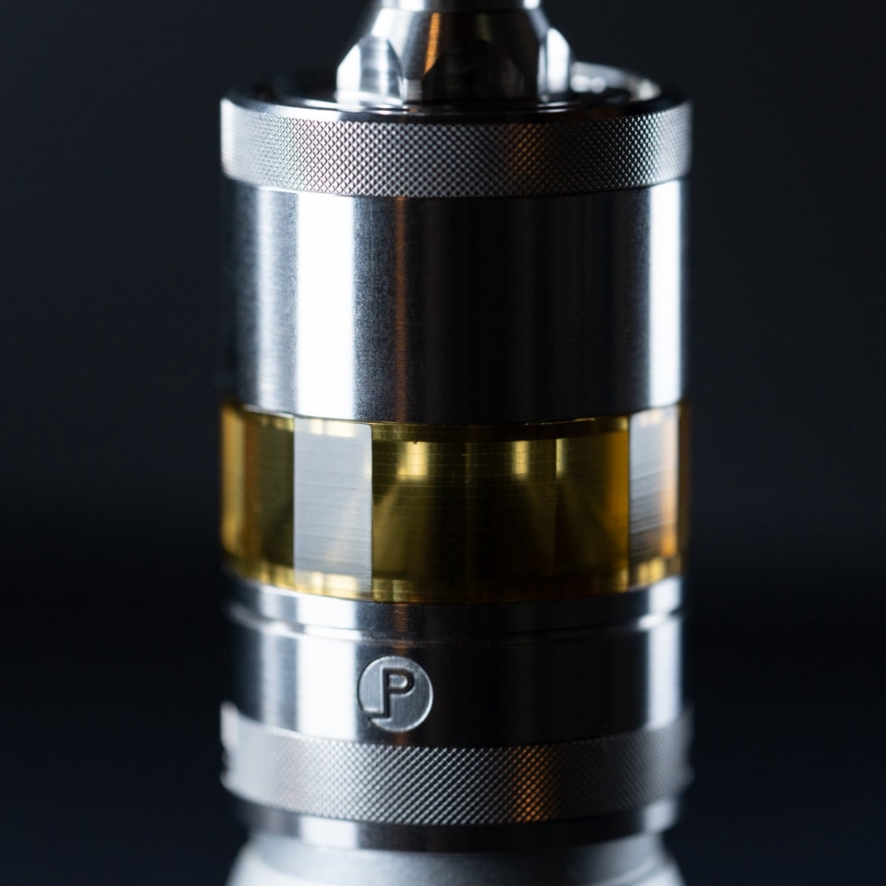 特にARCANA MODS純正オプションのダイモンドカットキットを使用するとアトマイザーの大部分が多角形のデザインで統一されてより一体感が生まれます。