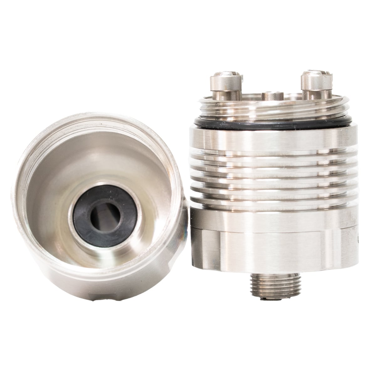 Caiman v5 の新しいエアピンは 2 つの部品で構成されています。ベース(エアピン)は、底面から取り外し可能なプラスピンとしても機能し、ネジ式コネクタ(エアパイプ)は、コイルの下まで空気を導きます。1.2のエアパイプがセットされています。